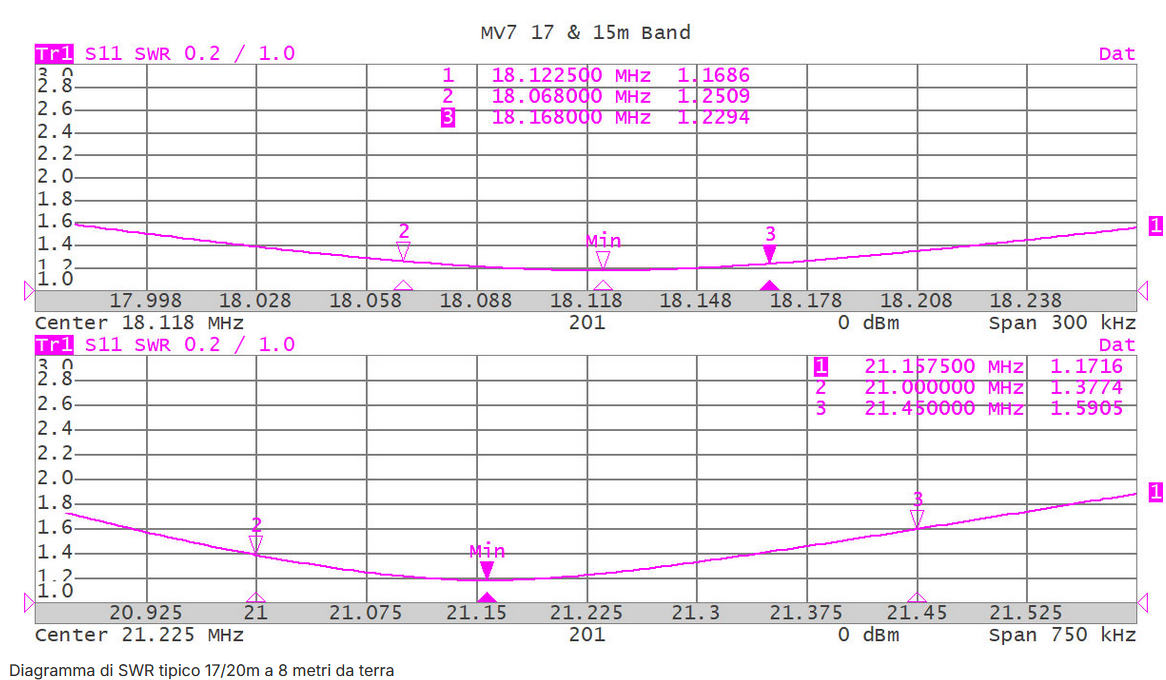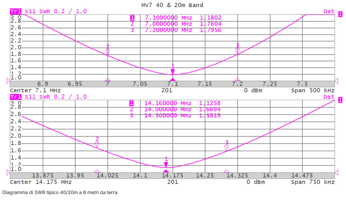 Based on these assumptions, we realized MV7, which by using resonant elements parallel (stubs) to the central stylus, allowed us to realize an efficient antenna on all bands covered.